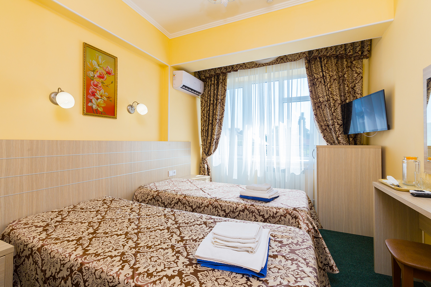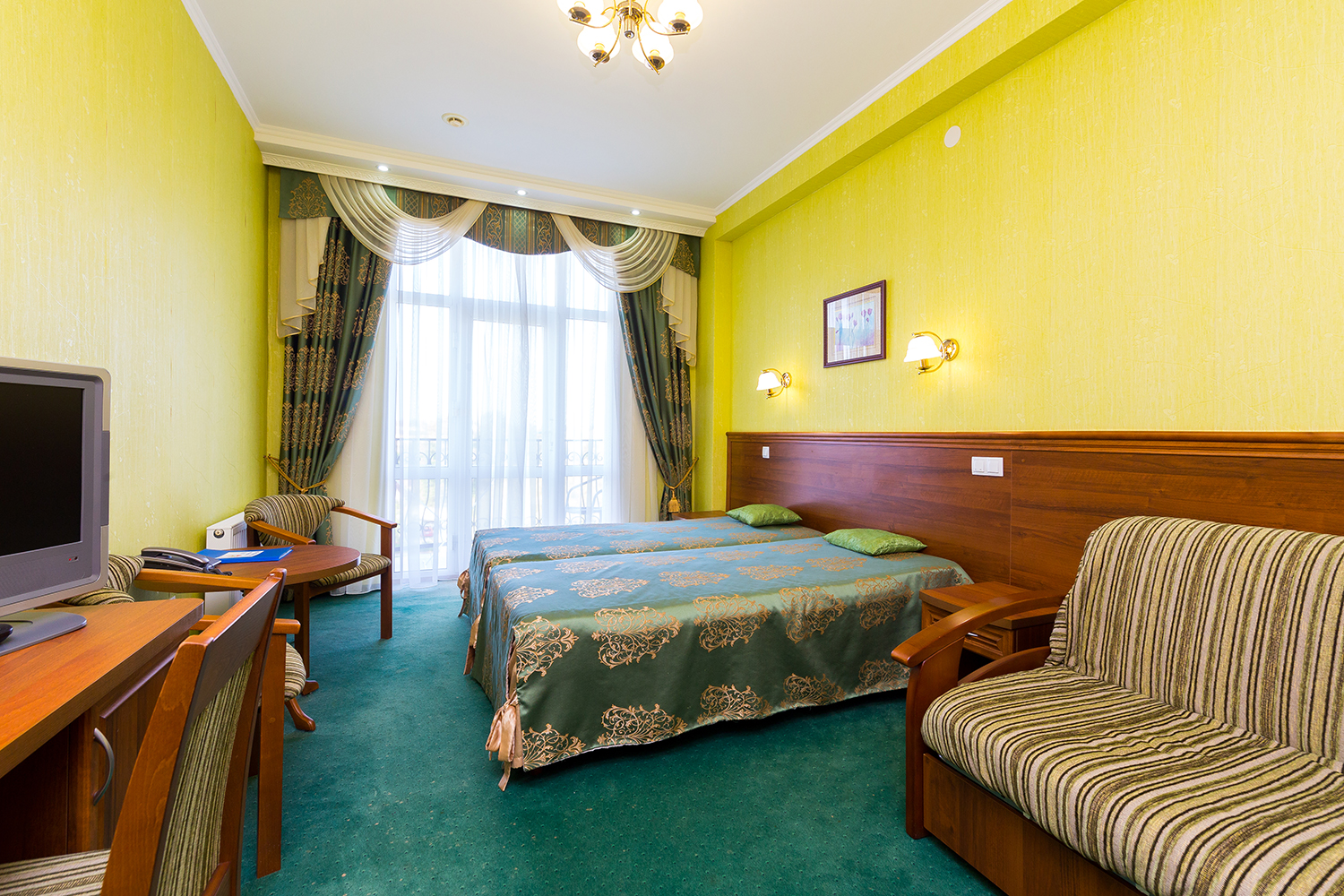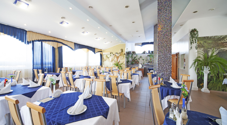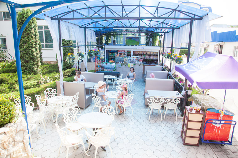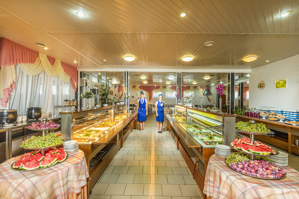 Питание организовано 3 раза в день в столовой по системам «шведский стол» и «заказ-меню». Также вкусно поесть можно в летнем кафе, а выпить напитки — в лобби-баре и фитобаре. В распоряжении постояльцев есть большой крытый бассейн площадью с зоной для детей и горками. Кроме того, можно воспользоваться услугами тренажерного зала, бильярдной, библиотеки, взять в прокат спортивный инвентарь. Для юных гостей проводятся различные анимационные шоу.