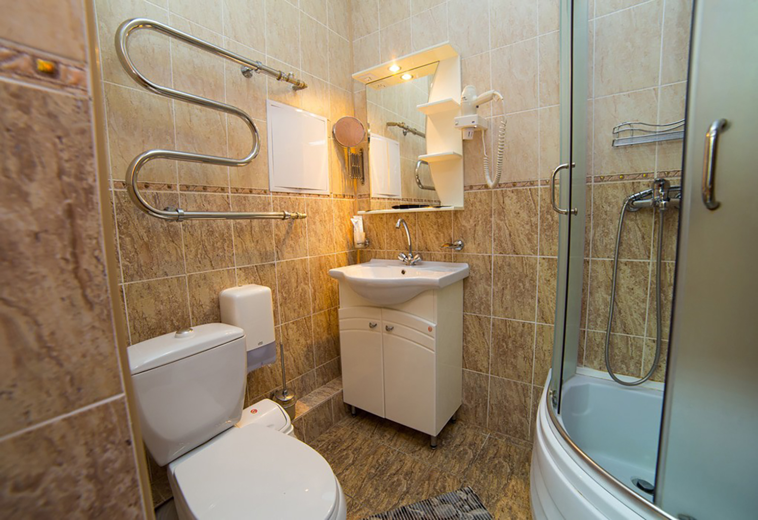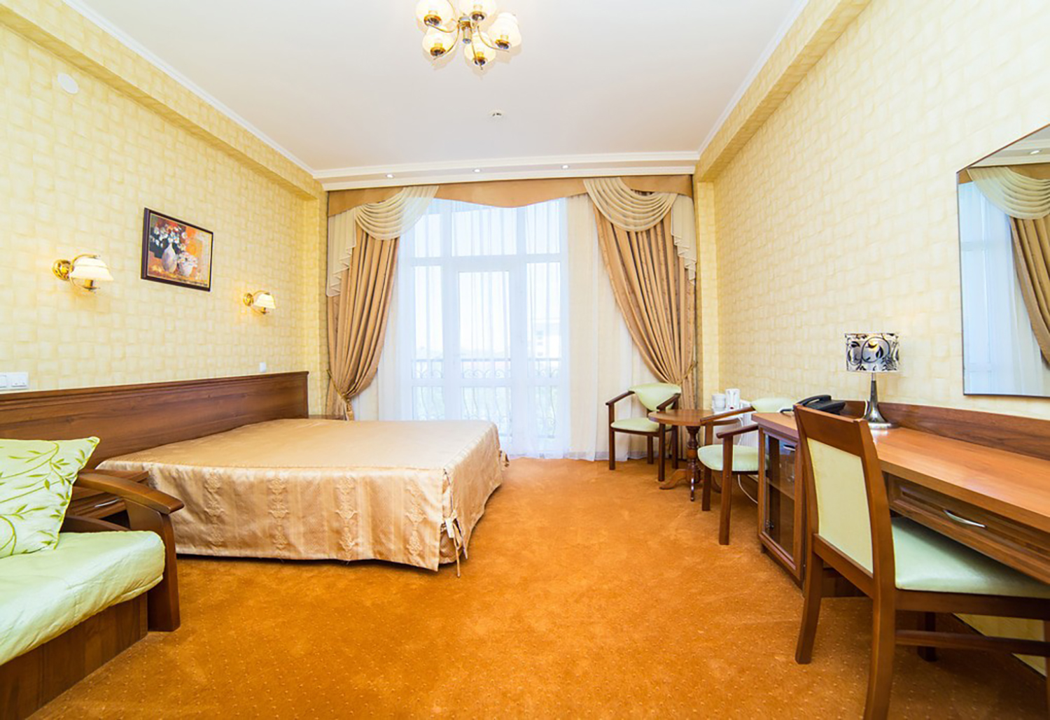 Площадь номера - 19 кв.м. 2 осн. места. 1 доп. место. Балкон. Мебель: вешалка, зеркало, кресло-кровать, кровати односпальные /одна двуспальная кровать, прикроватная тумбочка, стол, стулья, шкаф. Оборудование: набор посуды, сейф, система общего кондиционирования, телевизор, телефон, электрочайник. Санузел: с душевой кабиной, тапочки, туалетные принадлежности, фен, халат. Сервис: смена полотенец (по требованию), смена постельного белья (через день), уборка номера (ежедневно), услуги внутренней телефонной связи.